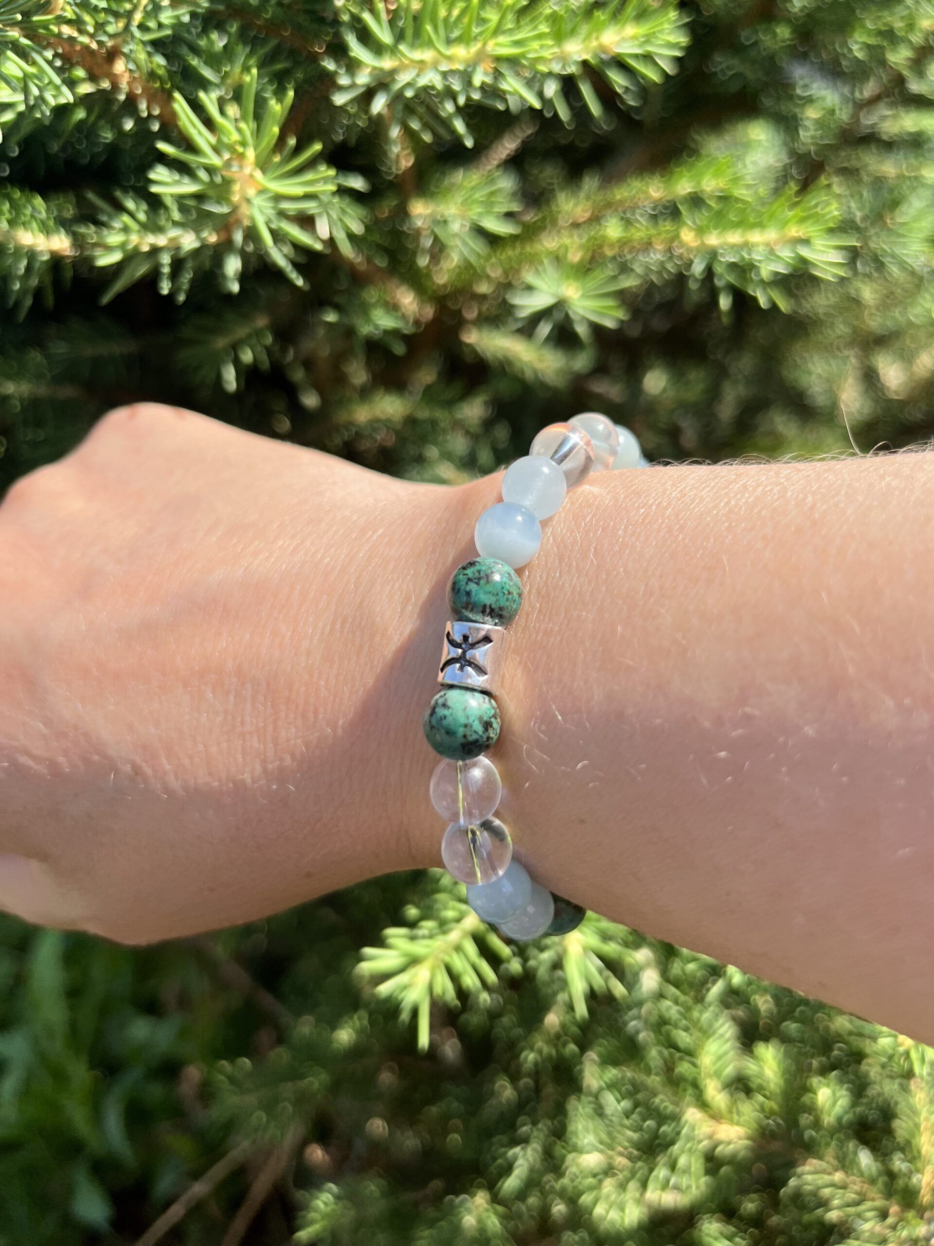 Bracelet qui aide les natifs des Poissons à garder ou retrouver la confiance en soi. Les pierres utilisées sont l’Aigue Marine, la Turquoise et le Cristal de Roche. Découvrez les propriétés bienfaitrices de ces pierres…Pour choisir ta taille, utilise notre guide des tailles.