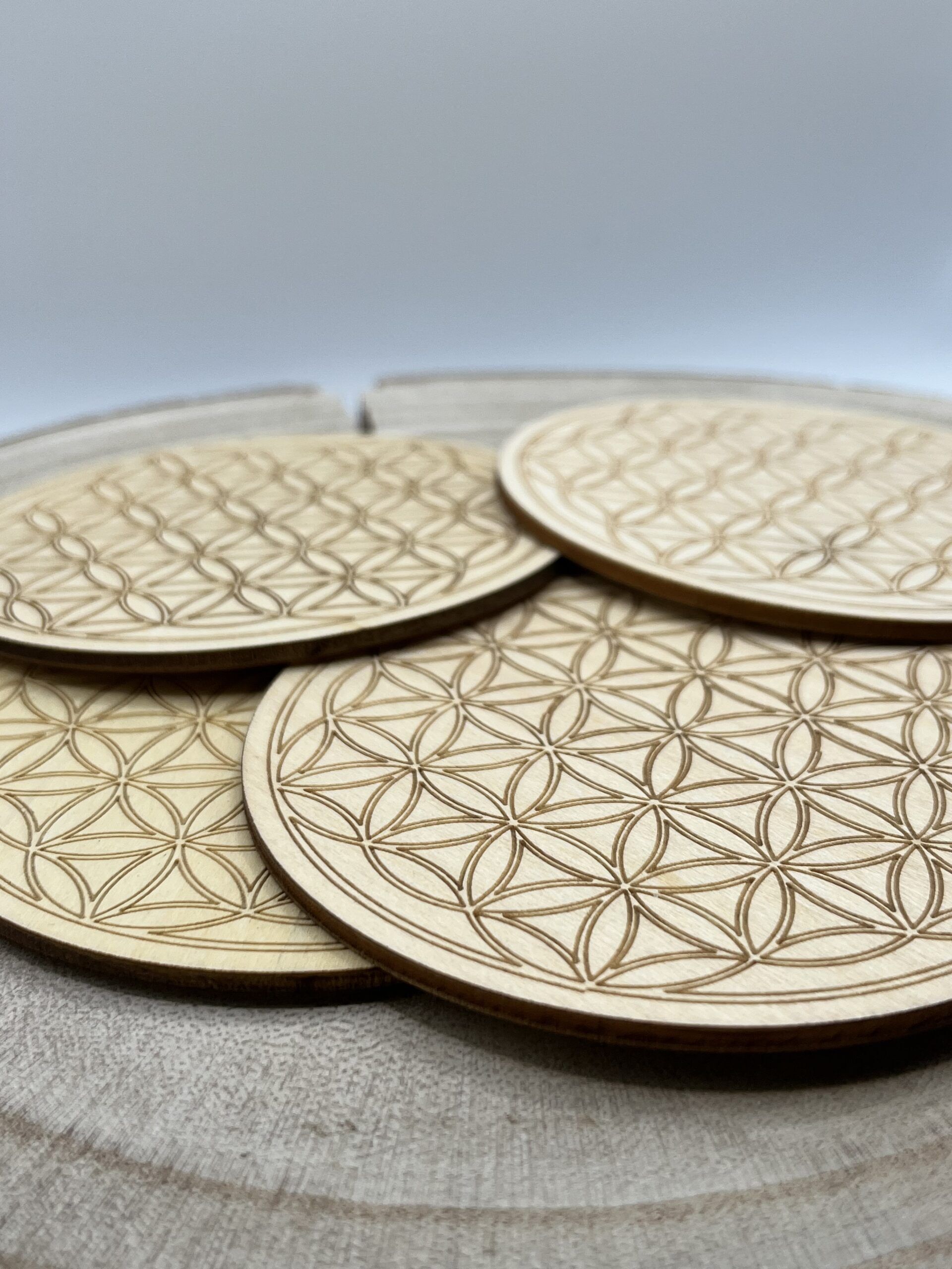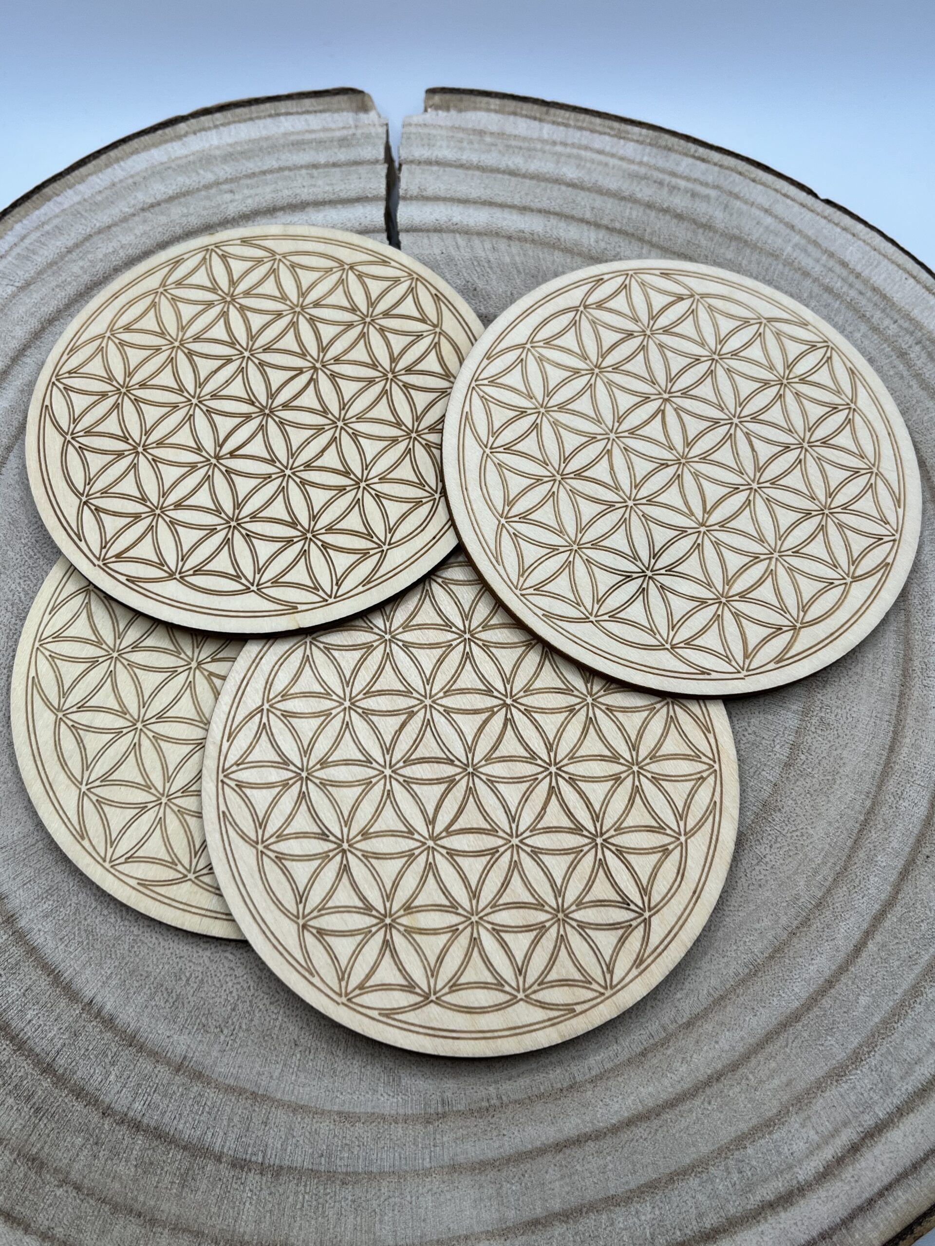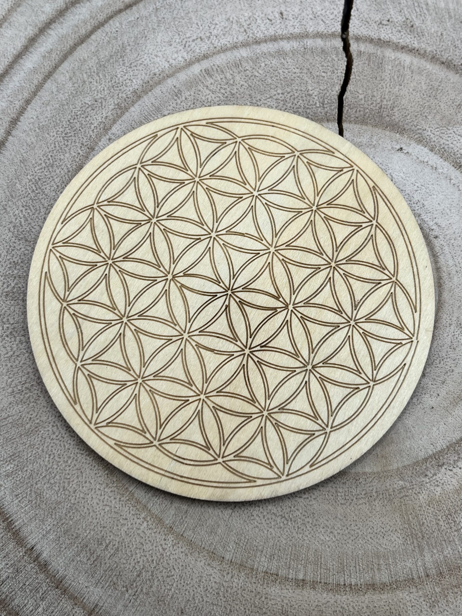 Fleur de vie en bois, 10 cm de diamètre.