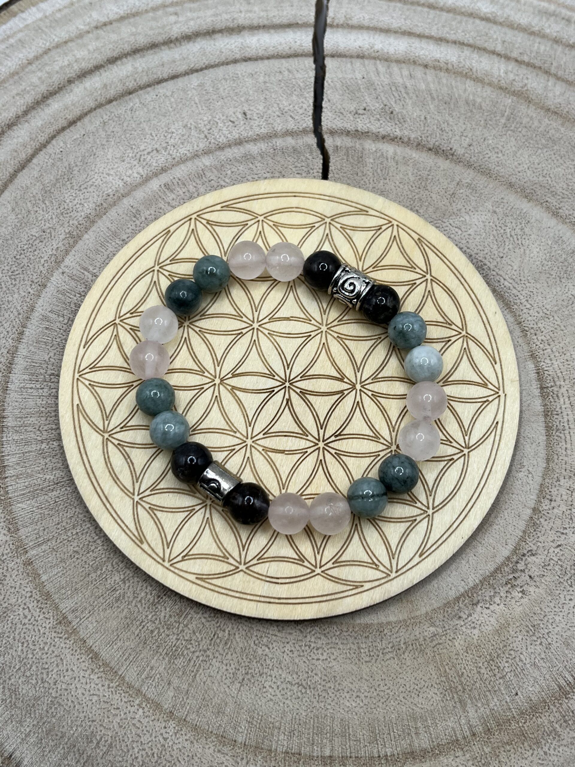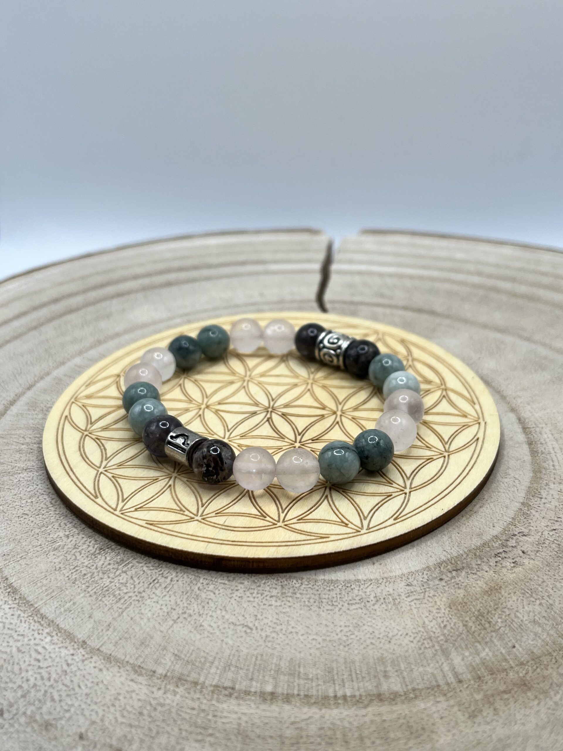 La Fleur de vie en bois permet de recharger ton bracelet en pierres naturelles en le posant toute une nuit dessus ou quelques heures dans la journée.