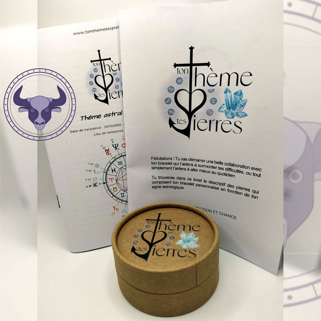 Nos packs permettent d’acheter en même temps un thème astral et un bracelet personnalisé de ton signe astral, tout en bénéficiant d’une réduction pour cet achat simultané. Si tu es du signe zodiacal du Taureau, profite de cet avantage en commandant ton bracelet personnalisé avec ton thème !